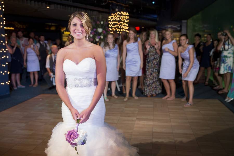 Our engagement is something that we will never forget. Christian secretly planned it out for months and although we had talked about getting married, I had no idea a proposal was coming. About a month before he did it, he told me that he had entered a raffle at work to go tour the Durham Bulls Stadium and then didn’t mention or say anything else about it until about 5 days before the date. He called me and told me that he had won the raffle he entered at work and that we were going to go tour the Stadium on the upcoming Sunday. (Side note, I was a softball player, Christian was a baseball player and we are both huge baseball fans and we love going to Bulls games together.) When we got to the Stadium that Sunday morning a “tour guide” met us at the gate and started to take us on our “tour.” We went past the locker rooms and Wooly Bull’s dressing room and eventually made our way out onto the field. When we got onto the field our “tour guide” told us to just walk around and take it all in. Christian then said let’s go to the pitcher’s mound first and of course I agreed. When we got to the mound we started pointing to all of the seats we had sat in at games together and then I look over to Christian and he was down on one knee. I had never been more shocked or excited in my life, but the story doesn’t stop there. He also had a photographer there to capture it all and he then took me to lunch and surprised me with both of our families being there. After Christian’s grand slam proposal, we started planning our wedding and it could not have turned out any better!