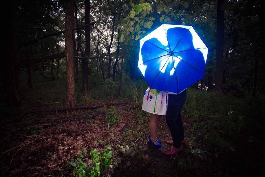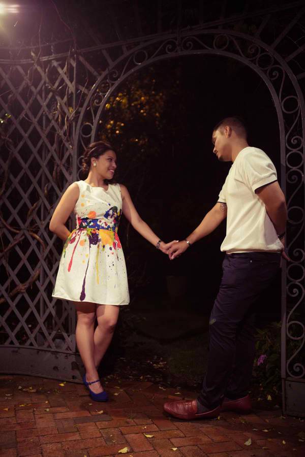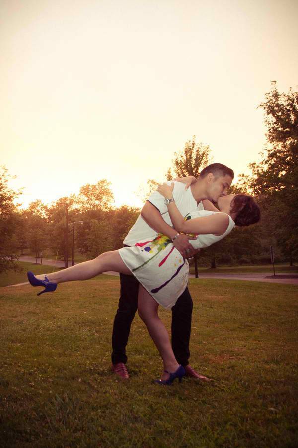 The couple has passion for art that reflected to their white and paint splash themed dress plus the blue T-strap heels for the bride-to-be.