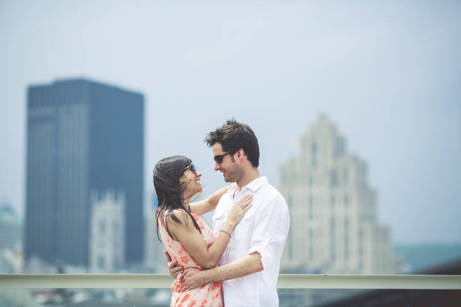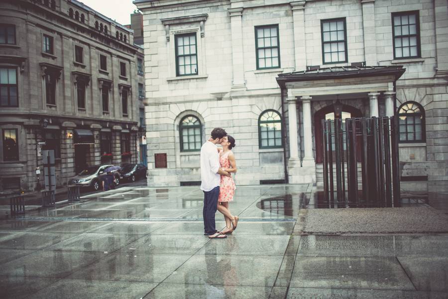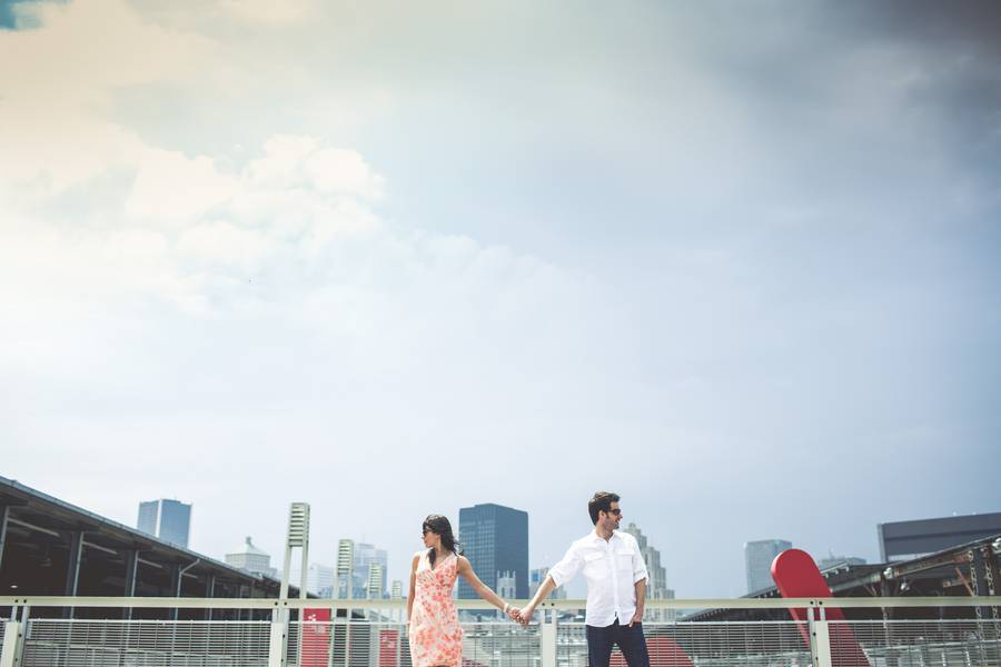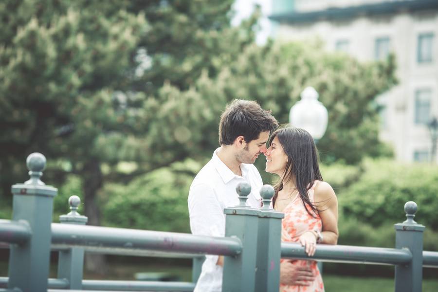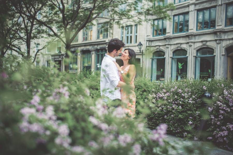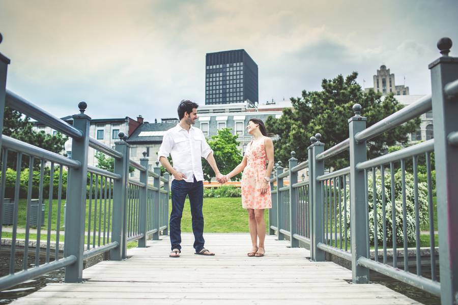 Annie and Julien portrayed love, fun, casual attitude in their engagement shoot and chose to do it in a park where the urban atmosphere and the charm of the old Montreal is felt. They also kept their outfits simple as they complemented it with the beautiful sunny day. Although they weren’t posing that much, they just walked free and we got some sweet and sincere shots from this cute couple.