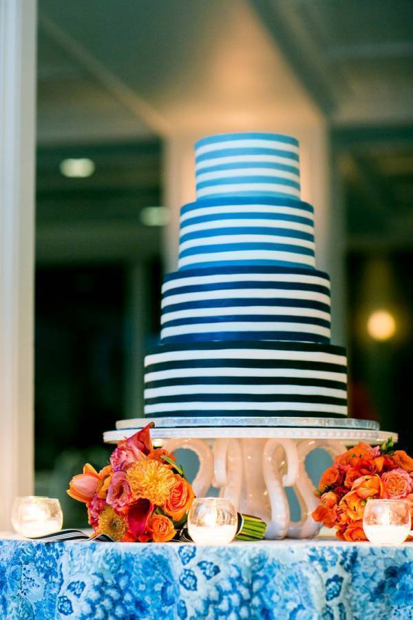 Of course, stripes are not only for fabrics or paper…they also work very well when edible! We just love this blue, ombre striped cake. It is very dramatic and draws the eye right away. Plus, it looks perfect for a formal or non-formal wedding.