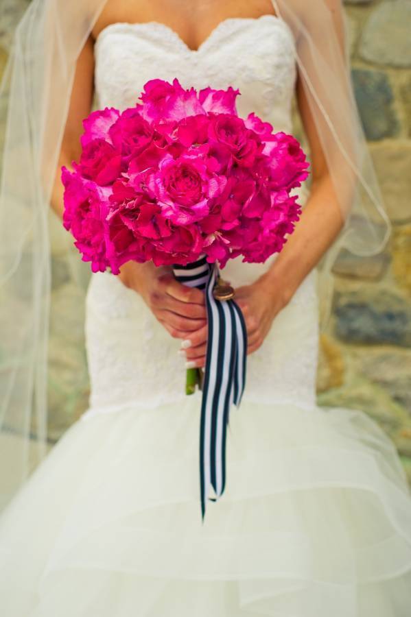 We just love the way this black and white striped ribbon looks against the vivid pink of this bride’s bouquet. It’s elegant, beautiful, and offers another layer of interest when it comes to the aesthetic aspect. Plus, it would be perfect in virtually any color, if you want to make sure your wedding colors are