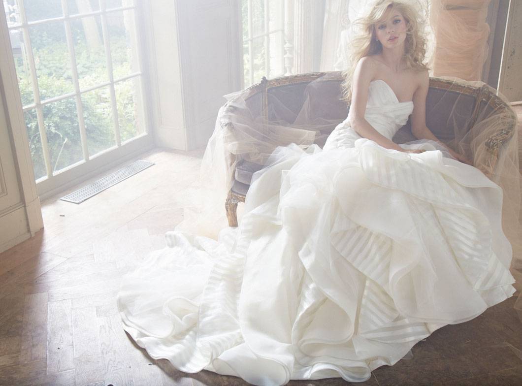 Want to make a serious statement? Then why not wear a striped wedding dress? As you can see here, the stripes on this dress are subtle and beautiful, but still add that extra element of interest as a pattern on the dress.