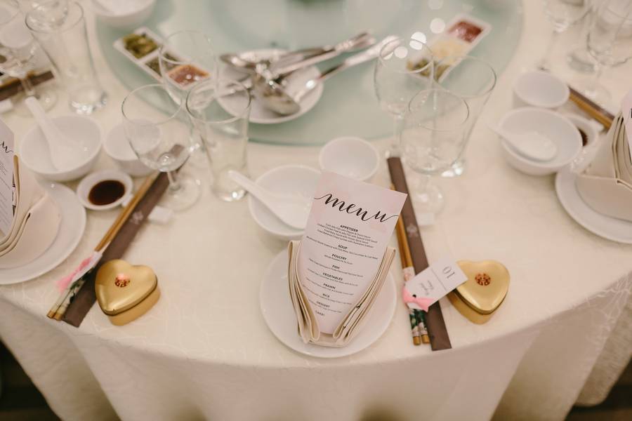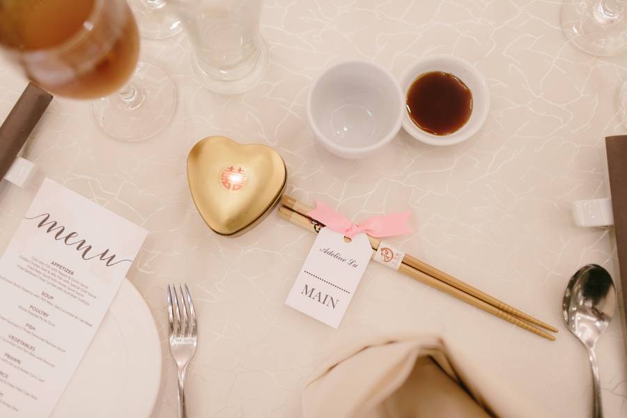 Place cards: We had the place cards attached to the chopsticks that we were giving out as one of the wedding favours.