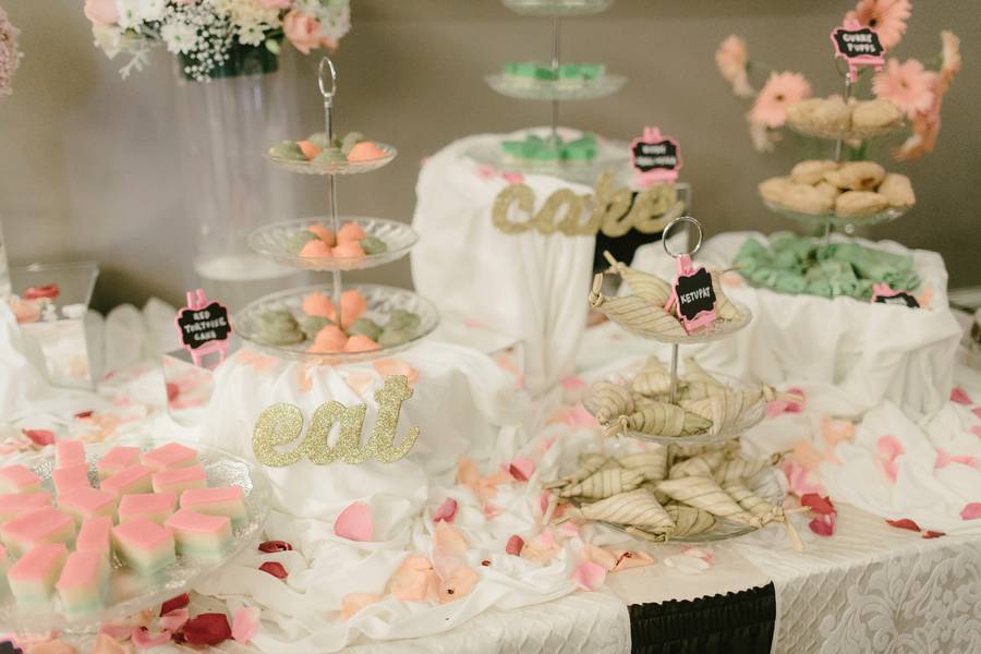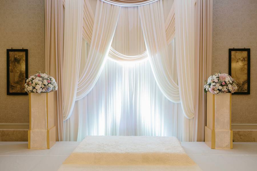We had a neutral and gold color palette for our wedding. We wanted a style that will complement the elegant and colonial look of the hotel. We also tried to keep the decoration somewhat simple and minimal since the hotel venue was already beautiful on its own. By keeping the colours neutral with pops of gold, I felt that it’ll help to accent the venue and it’s also an easy color scheme to work with overall. We had a particular soft spot for draping, so we made sure we had draping as backdrop for our wedding ceremony, photo booth and entrance to the reception. It gave the venue a very romantic and intimate feel to it. We made sure there were just enough flowers around the venue as well to tie up the look.