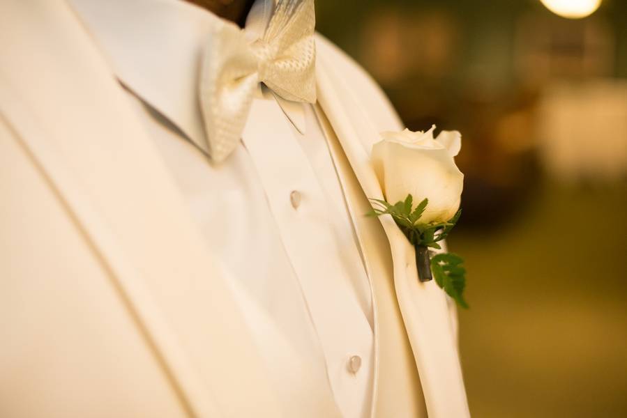 The Wedding Outfit: The bride and groom wanted an elegant wedding day, so they went with all ivory. The bride wore a breathtaking ivory dress with a long cathedral veil. The groom wore an ivory tux with a nice bow tie to finish the look.