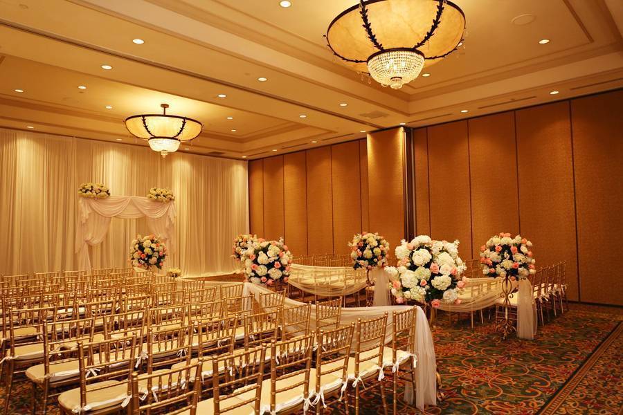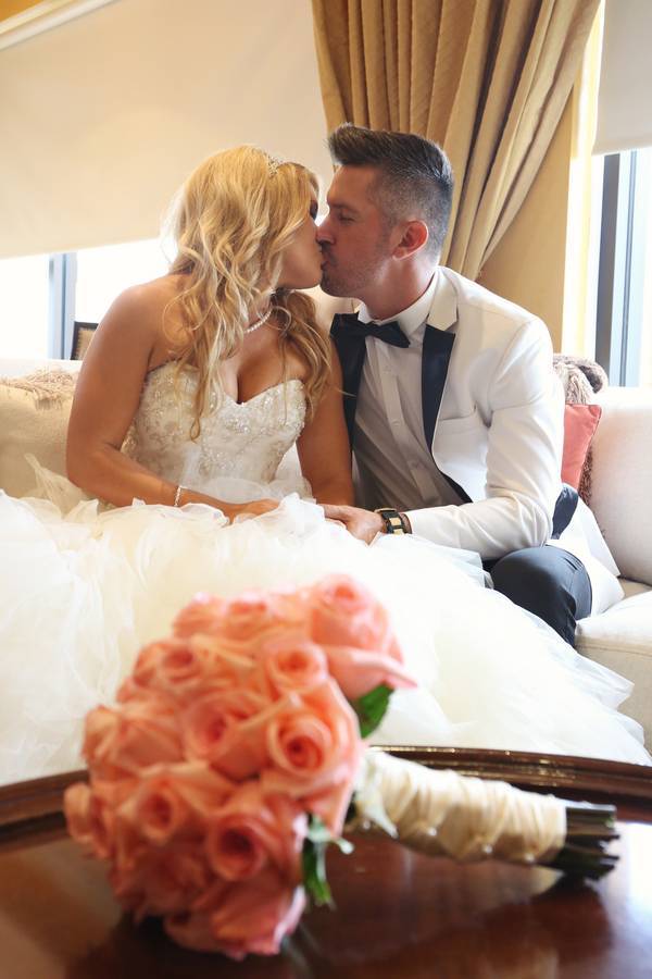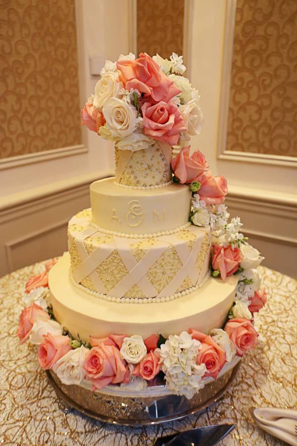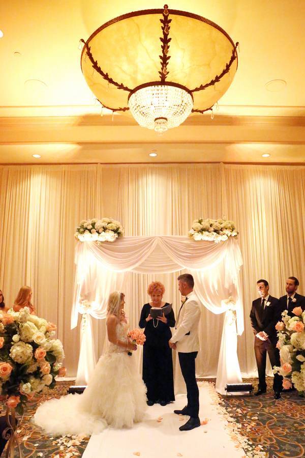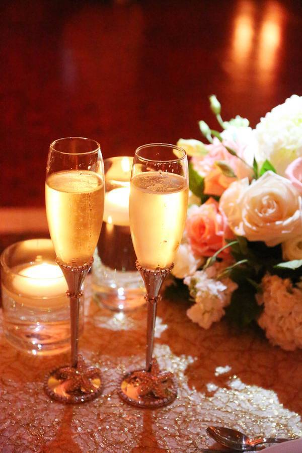 The decor. The reception and ceremony rooms were elegant and beautiful. April and Miha were picky about the Pastel Coral rose pedals in the floral arrangements and were able to bring in the cream and champagne colors with the help of our florist. They also spent a lot of time on the lighting and the “look” of the rooms, which greatly paid off.
