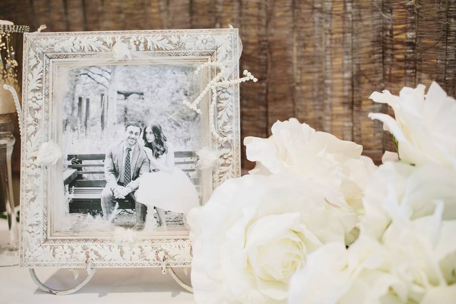 The decor. The dining room was decorated in lavish floral bouquets, diamond encrusted engagement photo frames, and plenty of gorgeous desserts and cocktails.