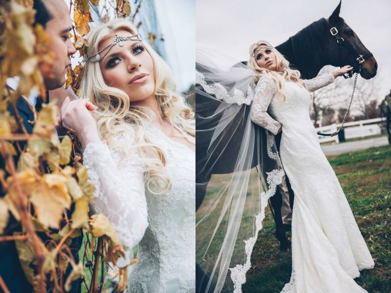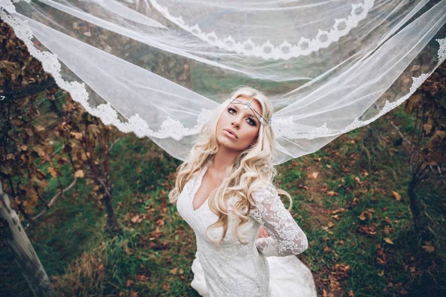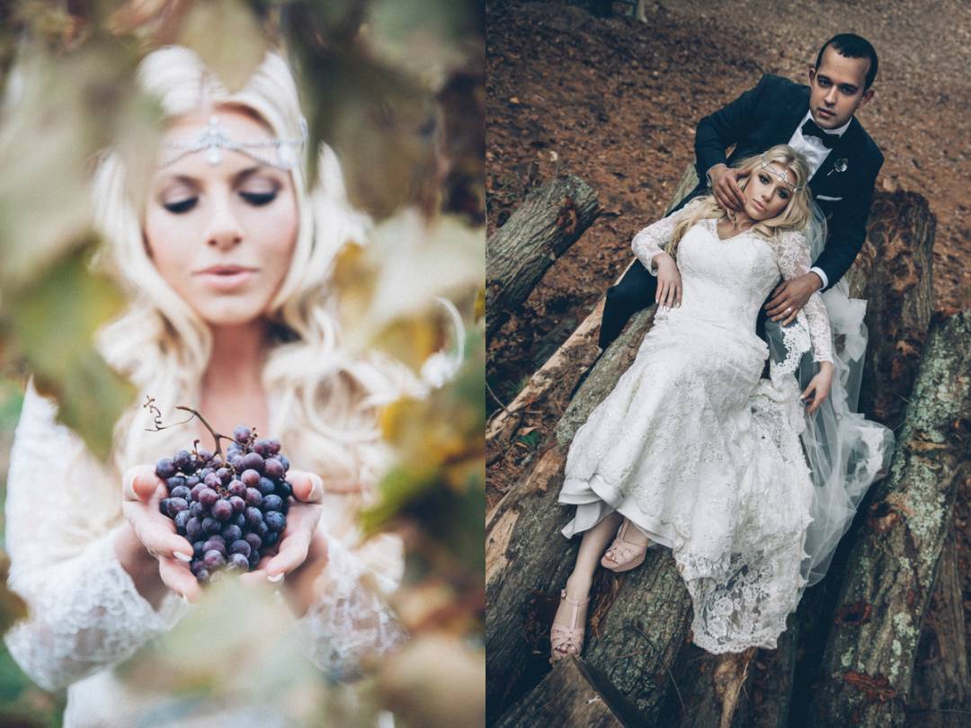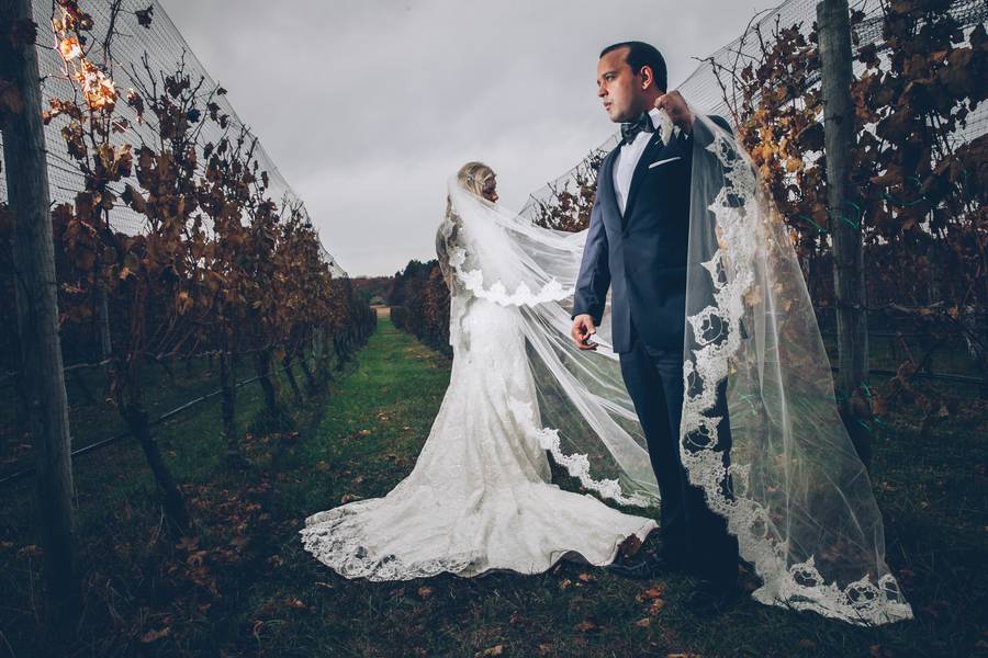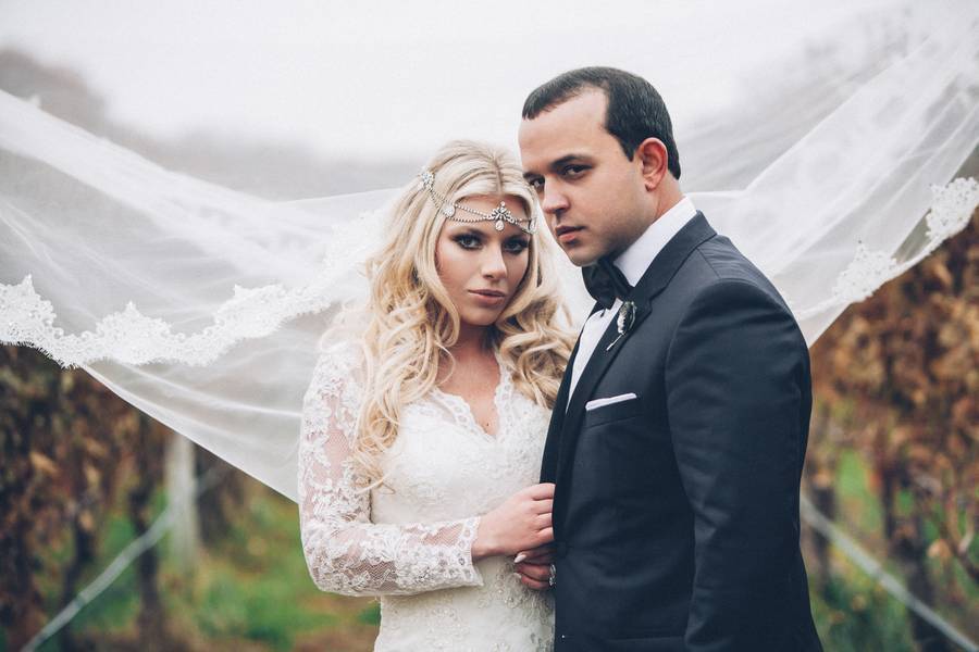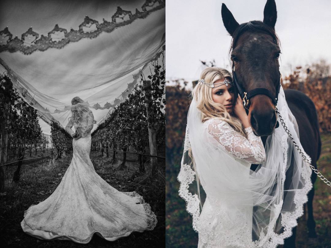 The countryside feels of the Baiting Hollow Farm Vineyard was madly felt in this Vogue trash-the-dress session. Shannon in her stylized wedding dress and long lace veil was very mysterious. I am a huge fan of the drama that this shoot has and with the right elements, you can be as unique and creative with your trash-the-dress too. Shannon and Al looked like professional models as they posed poetically in front of their photographer.