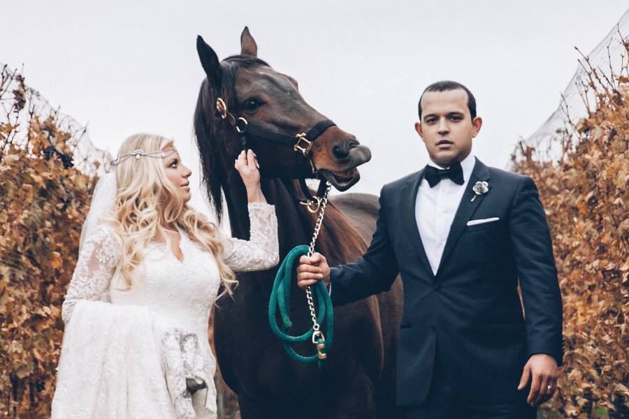 We chose a marvellous location in East Long Island, Baiting Hollow Farm Vineyard, that not only offers a countryside feel of a vineyard, but also access to rescue horses which you can use after making a donation to the shelter.