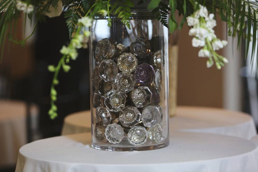 Allison’s Aunt Judy owns a local Antique shop…so she used many of her pieces to decorate with. Lots of vintage accents. Also, Allison’s father took an old string of pearls that needed re-strung he had given to Allison’s mother, and had some of them fashioned into the pearl bracelet Allison wore on her wedding day.