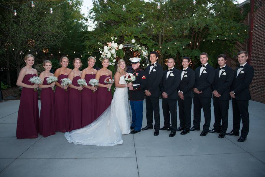 Street and Julie are High School sweethearts, even after Street’s Family moved away while they where in High School their love endured and blossomed over the years. Street is a Marine and was preparing to deploy to Afghanistan through the planning process, so this was a wedding planned with precision timing. Married at The Gardens on Millbrook they had their ceremony outside, followed by their reception inside. The Beautiful waterfalls, Gardens and market Lighting make for a spectacular venue.