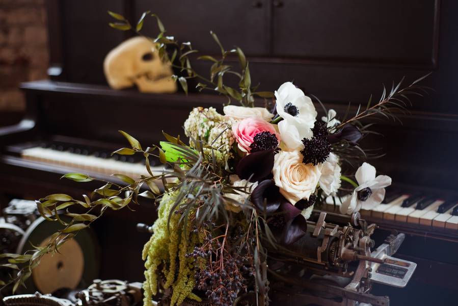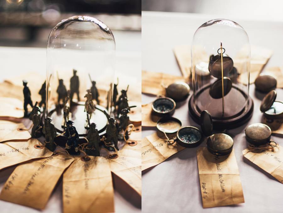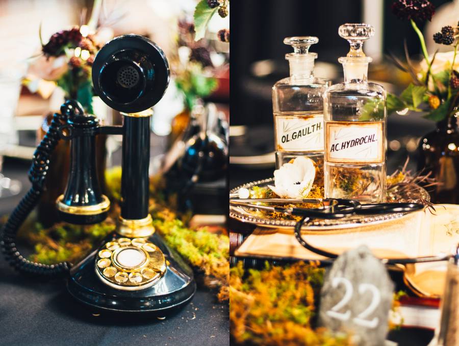 The reception was definitely a monster mash– if you will. Each table was beautifully decorated with a unique and individual centerpiece. From old, vintage books, dominoes, chess pieces, tarot cards, and spirit boards, to mossy tablecloths and tiny music boxes, each item represented the couple in one way or another. And to think the creativity would stop there… it didn’t. WWII-era love notes hung from the ceiling above the dance floor where Christy danced with her father who then handed his daughter off to his son-in-law for their first waltz as a married couple.