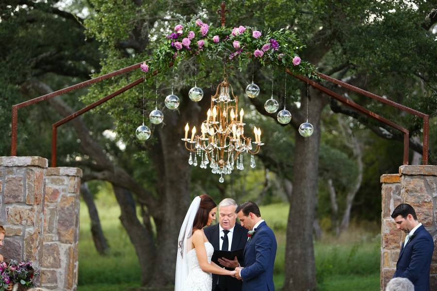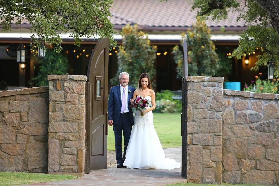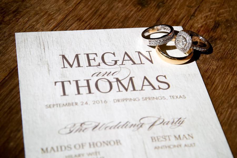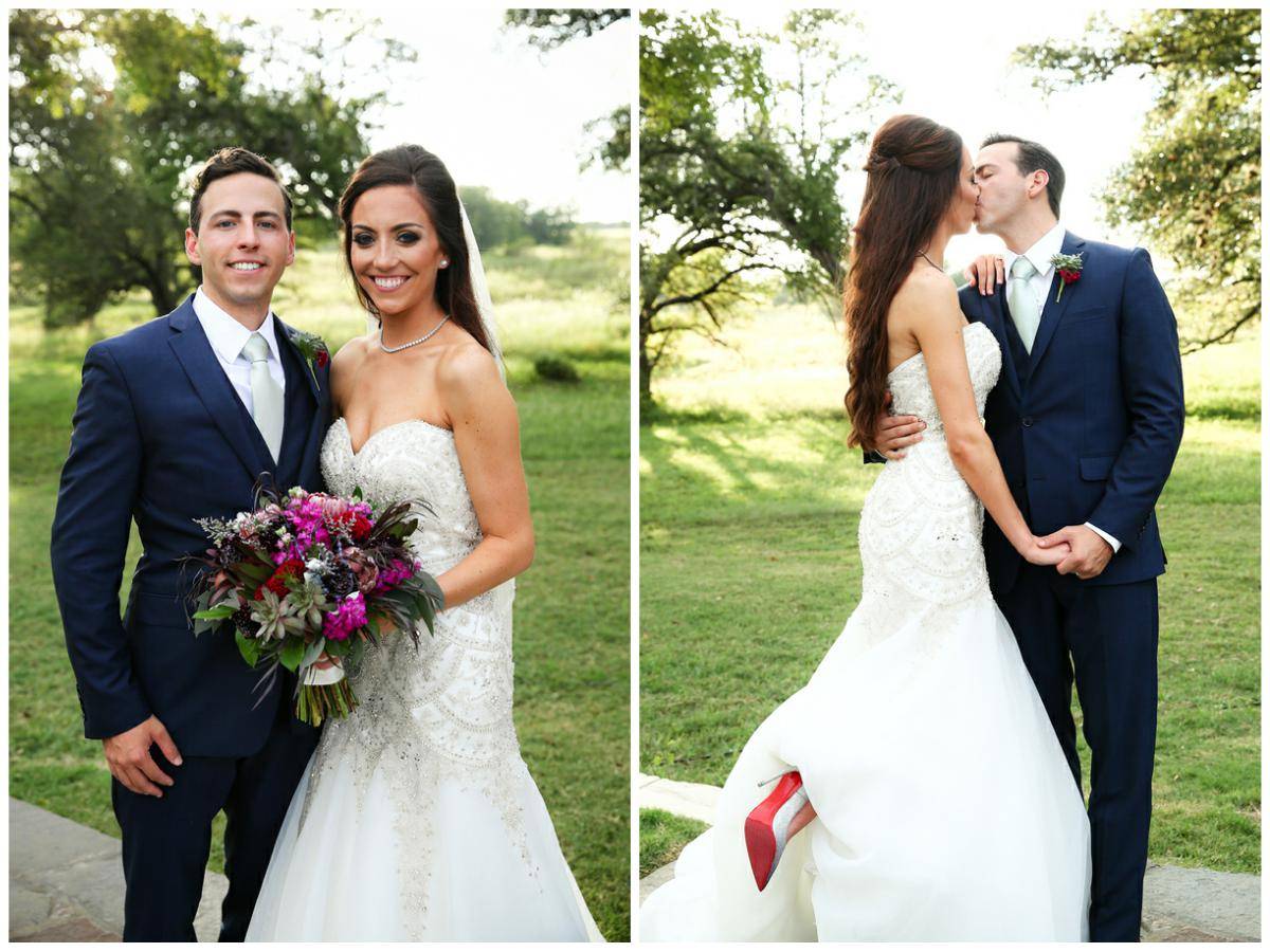 What a beautiful Ma Maison grove wedding in Dripping Springs TX, photographed by Hyde Park Photography! Megan & Thomas wed at Ma Maison’s beautiful Grove location nestled among the majestic oak trees. Be sure to check out Megan’s shoes by Christian Louboutin and Thomas’s groom cake (you could cut it OR fillet it!). I love the thoughtful gifts Megan gave her parents, including a custom engraved fishing lure for her father. Each bridesmaid looked beautiful in her own unique dress. I love this style! And every flower girl deserves her own little gold crown!