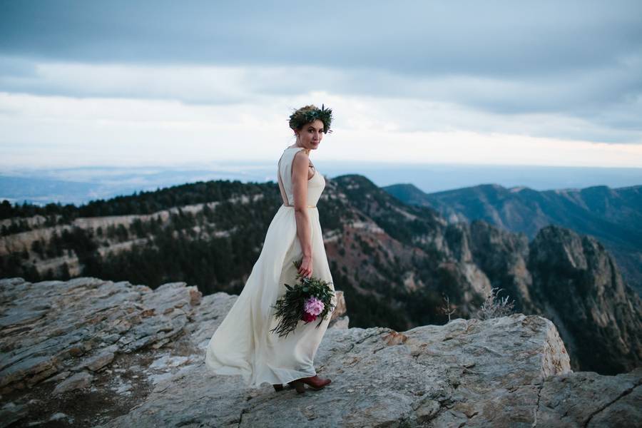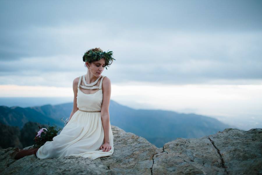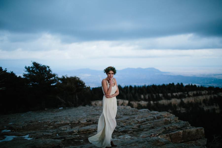 The location for the session was on the very icy Sandia Crest in the woods, an old forest ranger stone cabin and a cliff. It was so cold, and icy everyone involved slipped and fell on the ice. We had to drag the model down an icy slope on a prop to prevent her from falling and nearly every bump in the road was hit. But though this adventure there was a gorgeous collab, lots of laughs and a gorgeous result.
