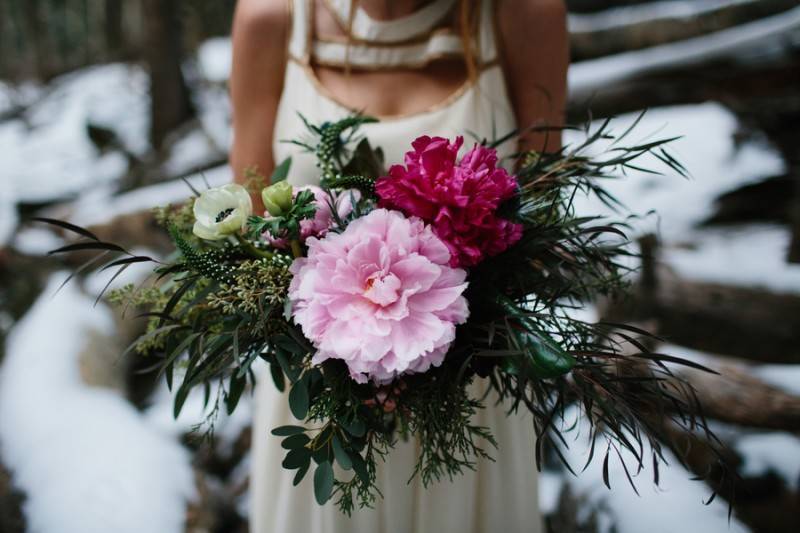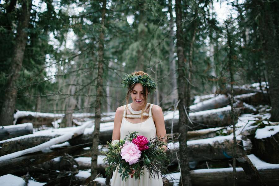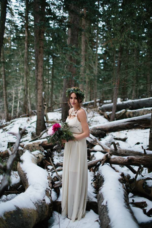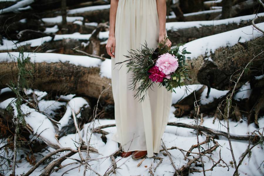 The icy mountains, woods, and the cozy cabin — the key elements that made this winter mountain bridal portrait shoot a success. The dress, the flowers and the arrangement (yes, it matters a lot) were on point to the concept that the team were going for. I love the shots that were taken in the woods the background were of tree logs capped with snow. For me, that gave it the most authentic winter-bride-in-the-mountain feel. And just the aesthetics behind it. Megan, the photographer, truly has keen eyes on this kind of things. Get the story down below behind this chilling beauty.