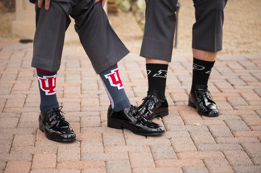 Other than it almost raining during the ceremony, one of the memories that sticks out to me is the quick game we played during dinner. Chris and I sat back-to-back on the dance floor and had to answer questions by raising either his shoe or my shoe. The answers (such as the brides side of the family being most likely to get into trouble!) got all of the guests laughing and engaged them. They all probably learned something about us that they didn’t know before, too!