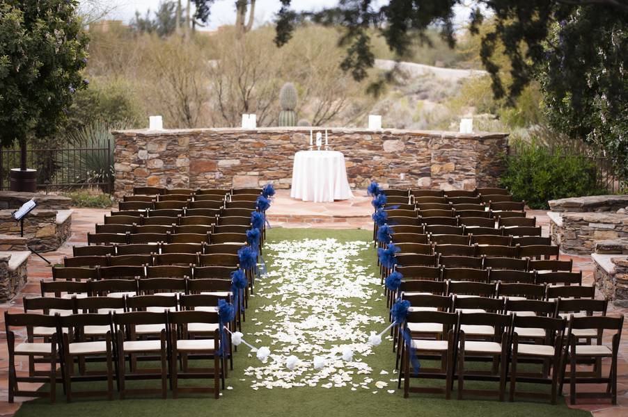 Chris proposed to me on his 30th birthday. After his birthday dinner he took me to his office’s patio, which overlooks Old Town Scottsdale, which as decorated with a pergola wrapped in white lights, which extended over a carpet walkway lined with rose petals and votives. He had decorated a table with wine, roses, and candles and with music playing in the background (and some of our closest friends hiding inside!) proposed.