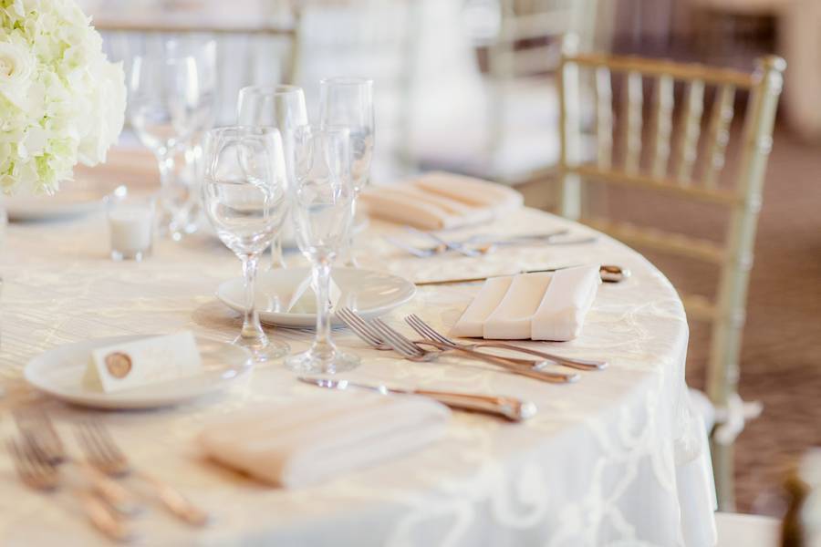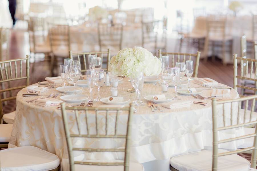 The theme of the wedding is best described as classically, elegant romanticism. The decor was white, ivory, and gold.