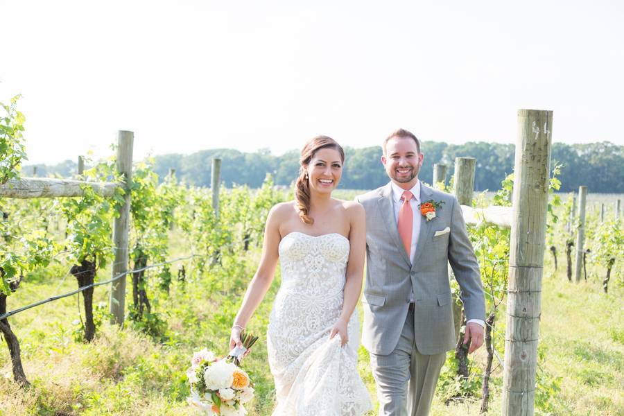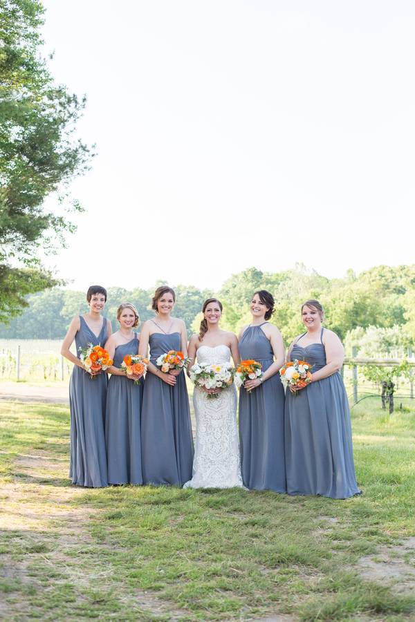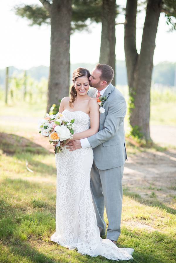 This vineyard wedding at Laurita Winery, shot by Susan Hennessey, has the right amount of rustic and elegant! From the wine bottle centerpiece/table number holder to the fairy lights and elegant decors — everything was well thought of. One of my favorite bit from Matthew and Ashley’s wedding are the flowers! The beautiful bright florals complemented the classic gray really well. Such a beautiful spring wedding day indeed!