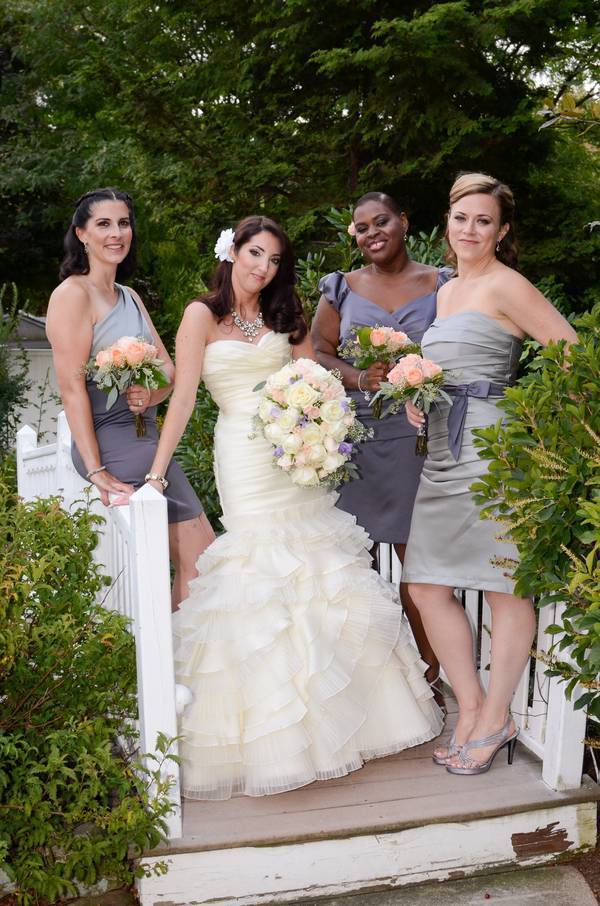 This was the hardest part for me since I am an artist, and I love the color! I knew from early on I loved the peach colored flowers but didn’t want to go overboard with peach-colored dresses too. After seeing the museum, I thought gray and peach-theme would look very elegant. Any bright color next to gray just pops, and it worked perfectly with the Museum decor.