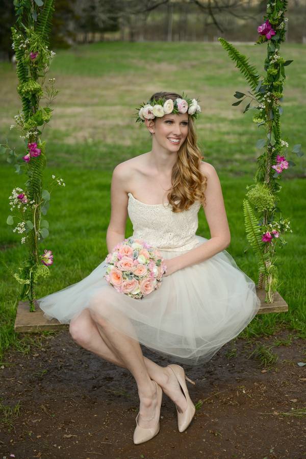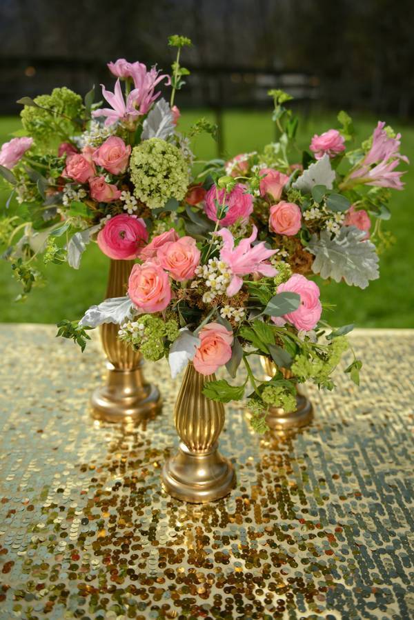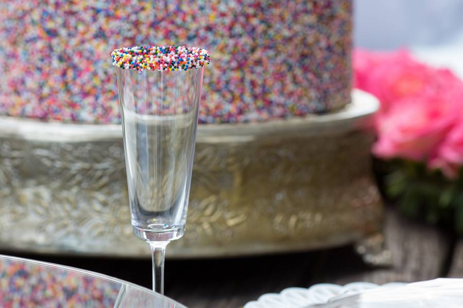 Today’s feature is a “Kate Spade” inspired wedding with blush, gold, and glam elements. The bride wore a whimsical and fun tea-length Allison Parris dress, that was lace and tulle. Champagne glasses were rimmed with colorful sprinkles to match the bottom of the cake. The bride’s flowers consisted of beautiful shades of pink peonies with a bouquet and flower crown to match. If this is what you have in mind for your wedding, then find inspiration in the gallery below!