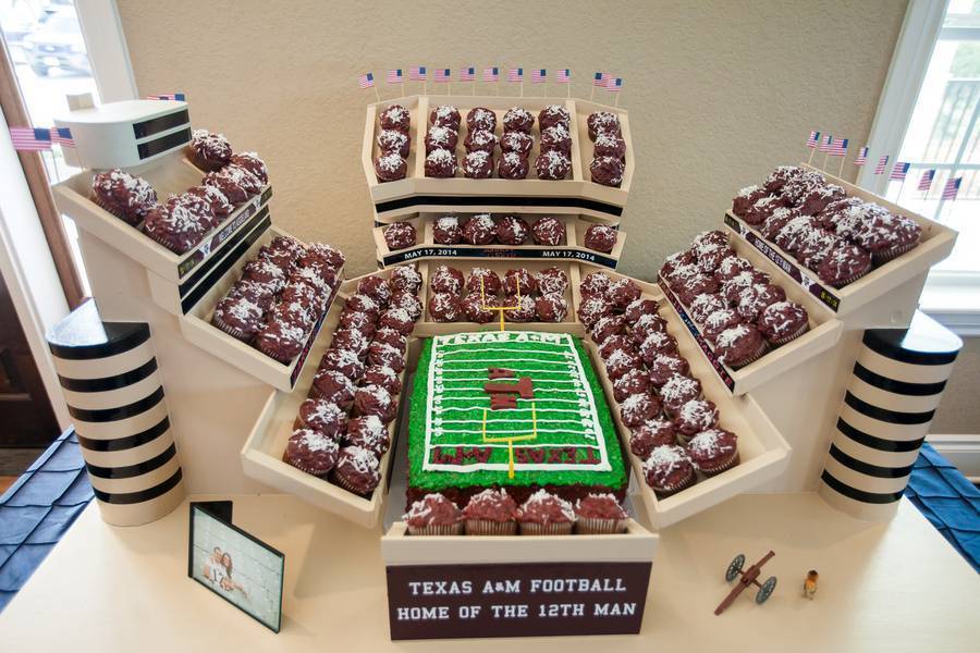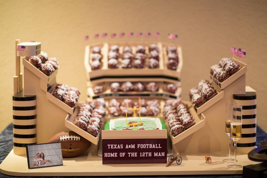 I’ve got to say, we tried this same set with the boys and they had not had enough to drink were not quite ready for that kind of fun. Maggie and Jarrid decided to do a first look, and it was the sweetest part of the day. Jarrid lost it when he saw his beautiful, funny lady; she was STUNNING. Maggie also gave her parents a nice homemade gift. Being an emergency room PA, she sewed two small heart-shaped patches on a crying hankie with a couple sutures. Jarrid and his dad built the full-scale Kyle Field cupcake stand for the grooms cake table. I’ve never seen anything like it; it was awesome. The mother-son dance was better than anything you’ve seen on YouTube, and most of the wedding party did a flash mob dance right after the toast. Maggie and Jarrid were completely caught off guard; it was great! The sweet and thoughtfulness of this couple as evident in little ways all day. I’m so honored to be a part of their special day!