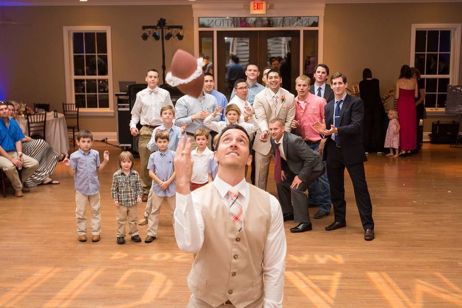 Jarrid and Maggie had a great balance of sporty and romantic for their wedding. I’ve already pictured myself having an outdoor wedding and Jarrid and Maggie’s outdoor ceremony had me dead set convinced! It was such a lovely day to exchange vows and just simply celebrate the love they have for each other. Jarrid’s love for football gave them an idea including football stuff at their reception. The football stadium cake stand that Jarrid and his dad built was crazy awesome. Read their wedding day story that was personally written by their photographer down below!