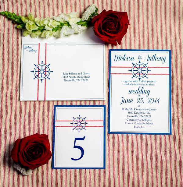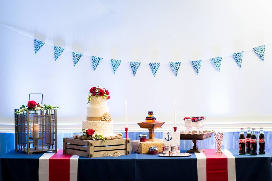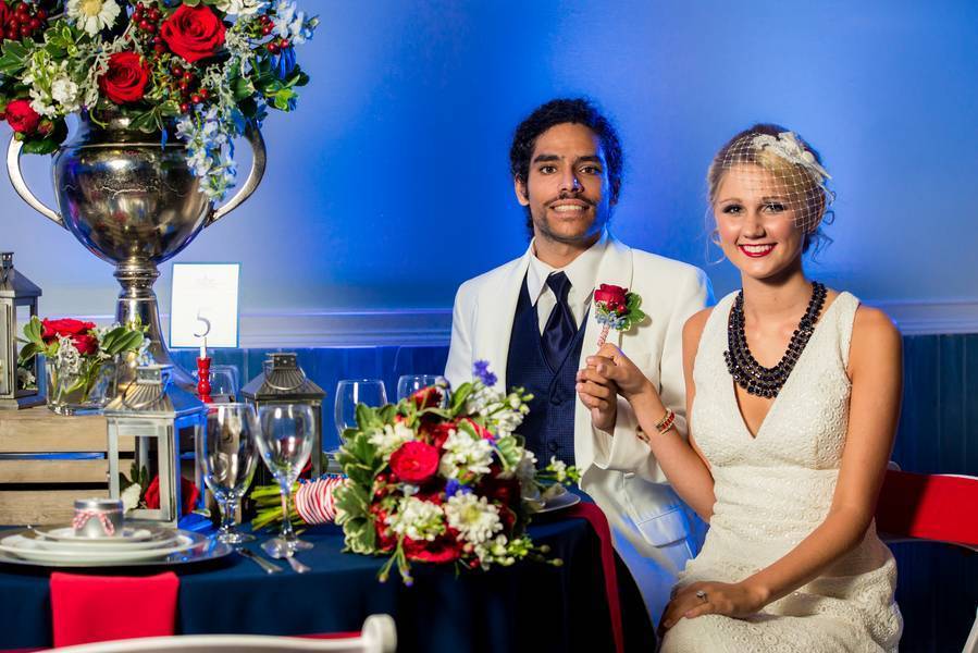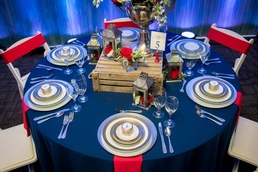 When the designers at Custom Love Gifts & Events and LB Floral saw the nautical blue and white trim inside an event room at Rothchild Catering & Conference Center, they knew a nautical inspired red, white, and blue wedding couldn’t be a more perfect theme. Sequoyah Entertainment provided blue tinted uplighting while Perfect Capture Photography captured the inspiration along with Rellek Video Productions.