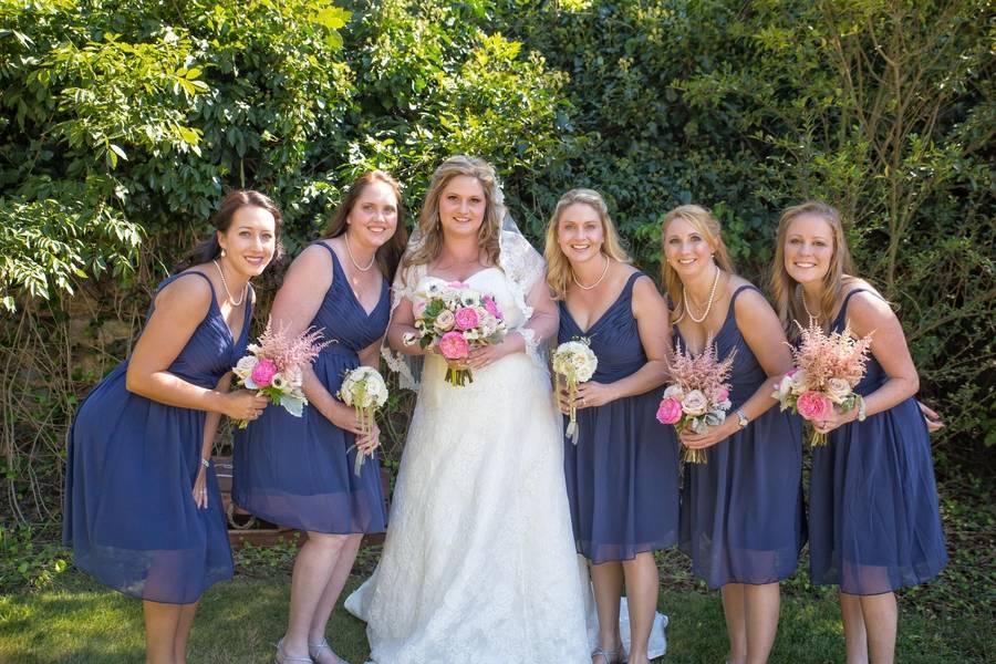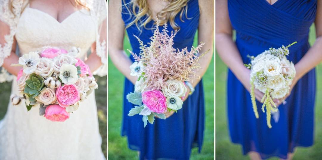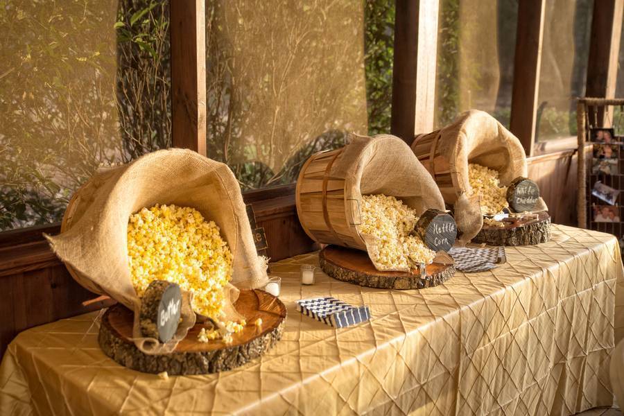 This beautiful rustic wedding in blue is just filled with details that we’re sure you’ll love. Our bride wore a beautiful gown with lace sleeves that were absolutely stunning on her. Her bridesmaids wore blue cocktail dresses with matching bouquets that were unique to each one. The ceremony was held in the sunny outdoors where the altar was adorned by a pretty arch made with twigs and flowers. The rest of the details, such as the rustic wedding cake, the tables, the popcorn bar (yes, a POPCORN bar), are all noteworthy because of its rustic but lovely appearances. Congratulations Katie & Wesley!