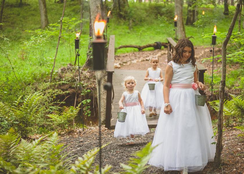 Mitchell and Hannah’s wedding ceremony was set outdoor. I love the juxtaposition of the dainty outfits in pink and white against the lush green and earthy brown of the forest. It gave a sweet atmosphere as they exchanged their vows. It was a mixture of dainty and rustic that ended up being so romantic!
