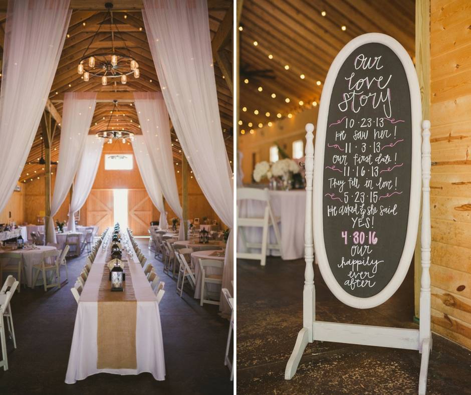 I describe their reception as a prettified barn! The white and tan accents inside made the whole look dainty without washing out the rusticness of the barn itself.