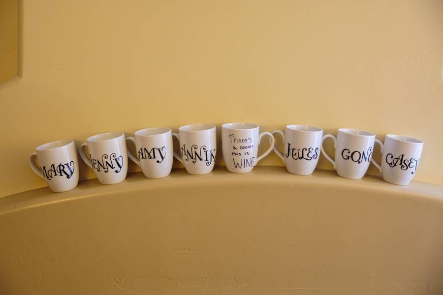 - I hand-stitched handkerchiefs for my Mother, Grandmother and Mother in law. -I made coffee mugs using stamps and permanent markers for my girlfriends getting ready with me.