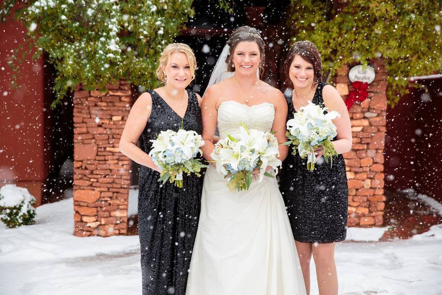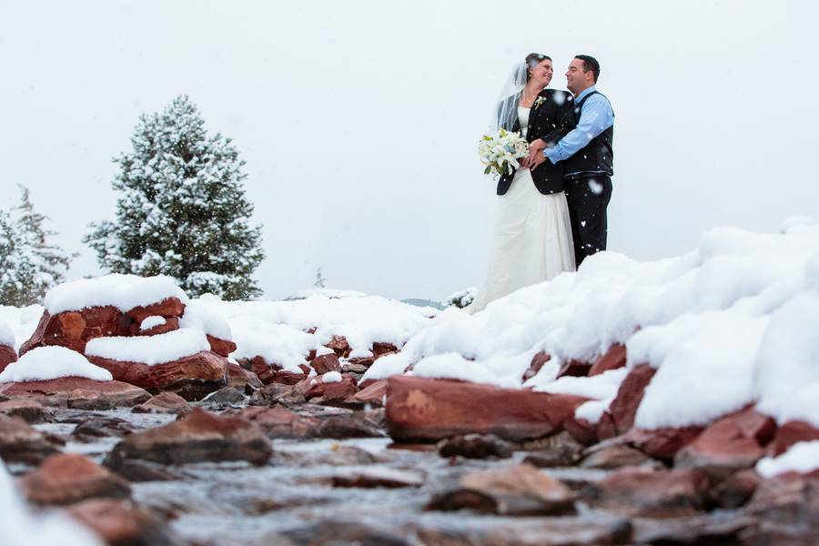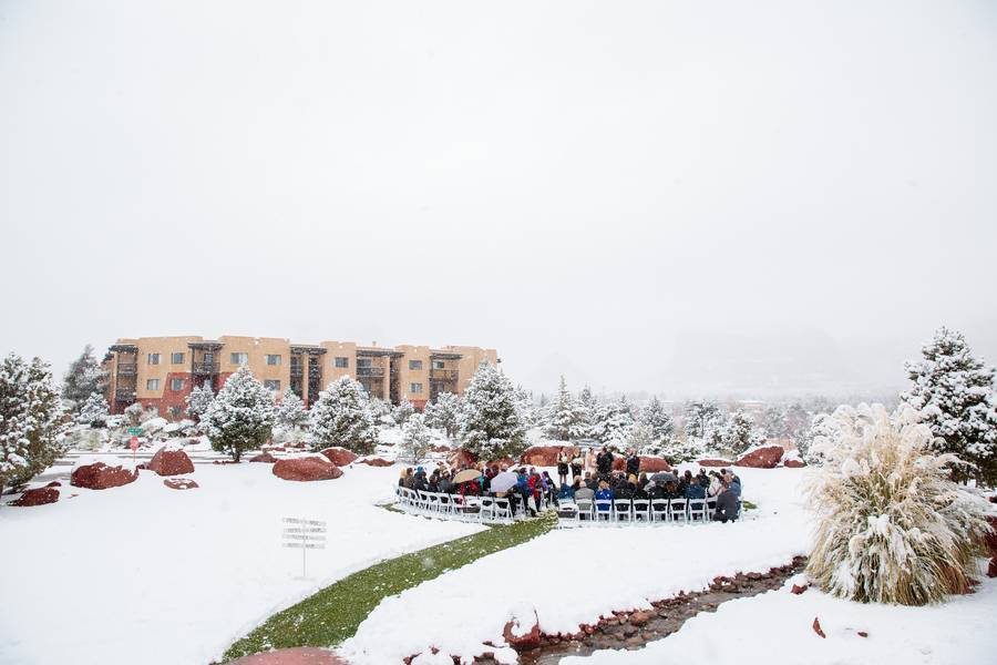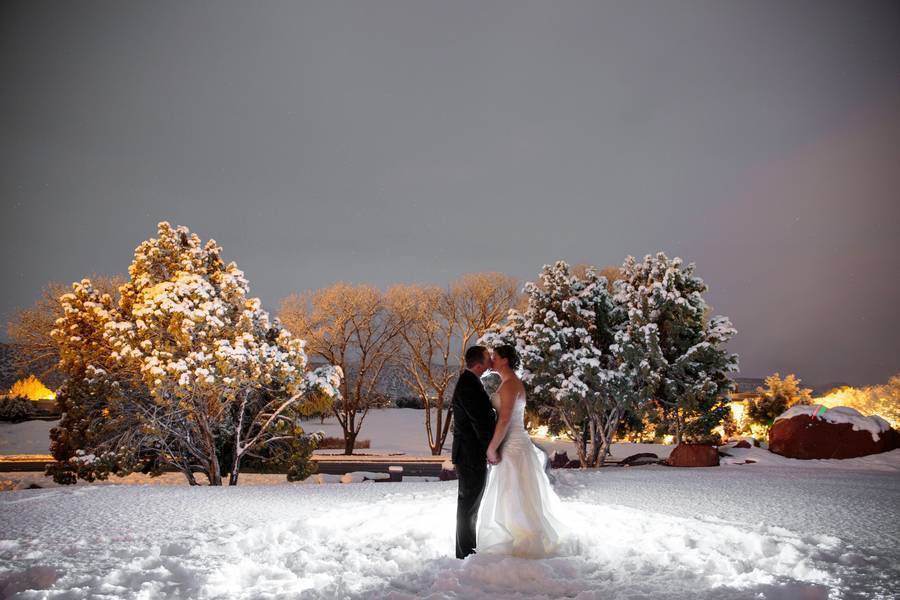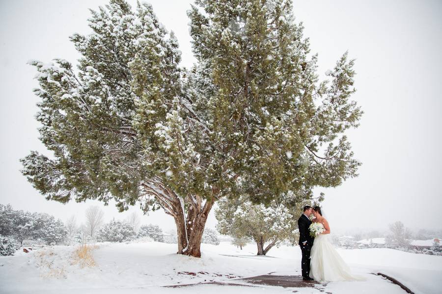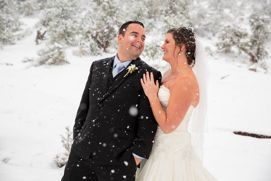 The snow! I don’t believe anyone was expecting it to snow on our wedding day, especially because we were getting married in Arizona. A week before the wedding I looked at the weather report and saw rain scheduled for our wedding day and snow for the day after. With lots of good thoughts, we were so fortunate to wake up to what we both agree was the perfect kind of snowy day.