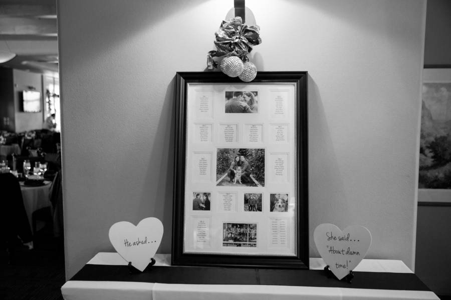 - My brothers, sister in law and dad helped make all the signs for around the ceremony and reception. (Friends of the bride, friends of the groom, sit together, there is plenty of room; Eat, Drink, Dance, We’re Married!; Alcohol, because no great story ever began with salad, and Polaroid picture frames for picture taking)