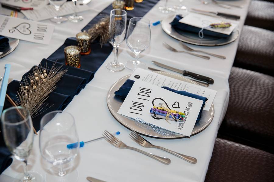 Since we decided to get married on New Years Eve we wanted to make it a fun party yet still a classy wedding. We picked our colors of gold, silver and shades of blue and incorporated as much glitter and sparkle as we could. We tried to make it, so the first part of the reception was the usual wedding reception and then turned it into an NYE party around 10:30 pm with hats and party favors to ring in the new year!