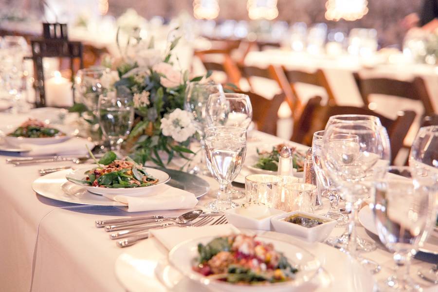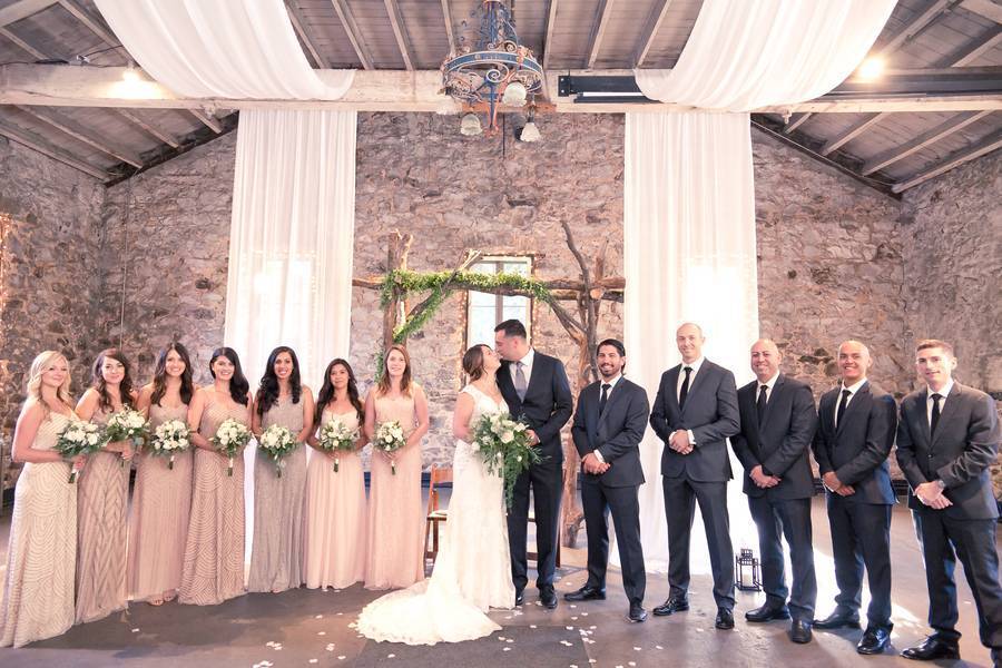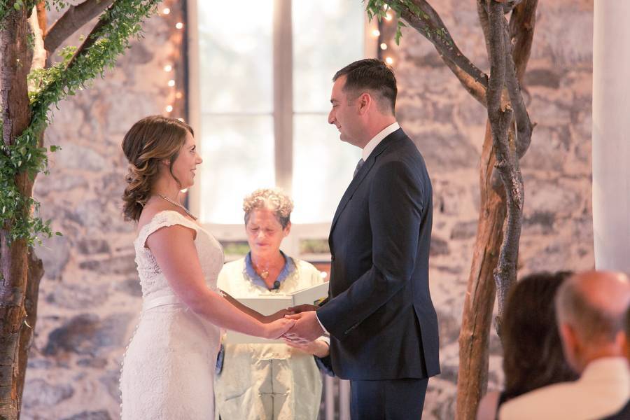 The setting at Miners Foundry was a beautiful stone building draped with white linen and lined with greens and candles.
