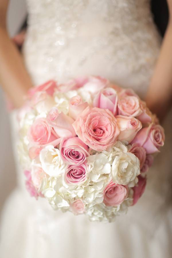 The florals. There were lots of shades of Roses and sprayed Roses from soft to true pink with more delicate shades used. Accented with white Hydrangea.