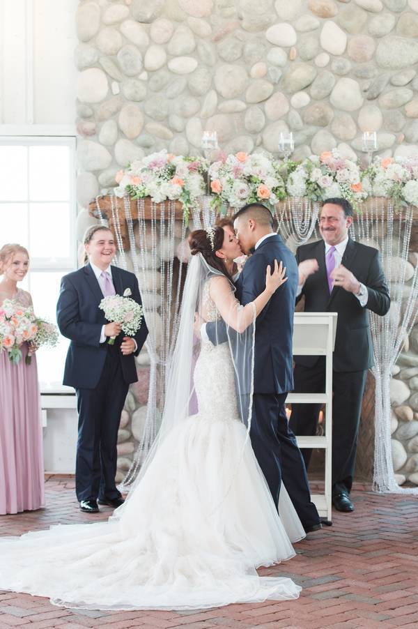 The bride wore a Stephen Yearick gown with a very over the top ivory dress with blush lining and crystals and gold embroidery everywhere. The back went really low which made it so sexy and elegant all at the same time.