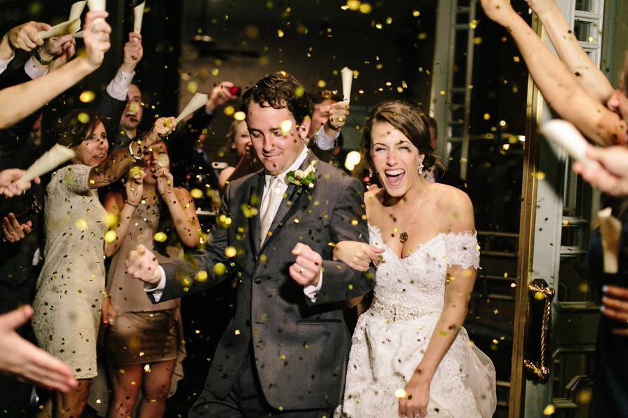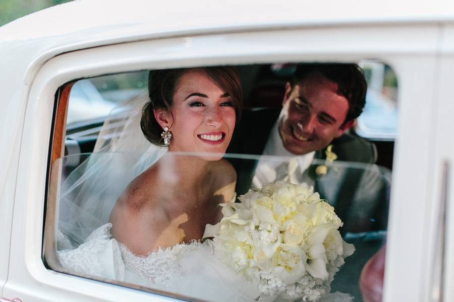 Highlights from Ceremony included the beautiful cathedral, touching hand off of father to groom and their first kiss. Reception highlights were arriving in celebrity style in the Rolls Royce, the beautiful floral arrangements, and the glittering confetti send-off. Still one of our all time favorite images!