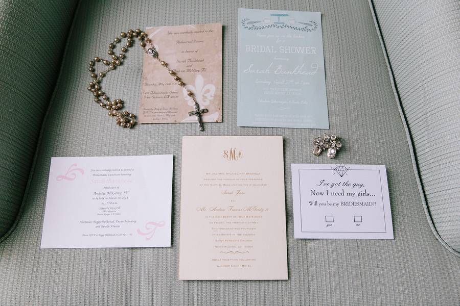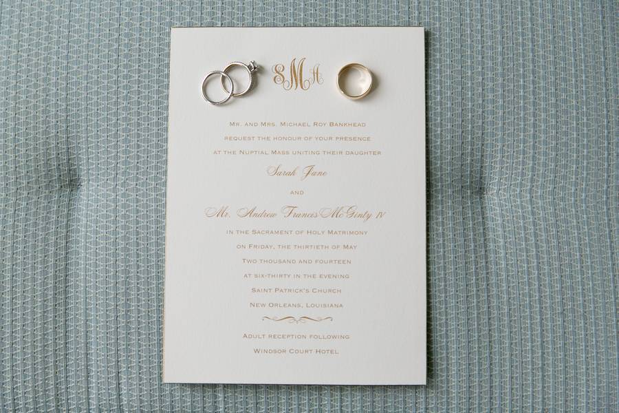 Sarah and Andy were married just a couple of weeks ago at St. Patrick’s Cathedral, with their reception following at the Windsor Court. I had forgotten that Andy and I had not met yet until right after the ceremony he shook my hand and said, “Nice to meet you!” He was just that laid back and easy going that I felt like I already knew him. Sarah is a beautiful lady inside and out! I’ve enjoyed our time getting to know her over the past few months. She’s such a sweetheart. I absolutely loved her dress! It was so gorgeous and more unique than I’ve seen recently. During bridal prep she was moving around the room with such grace — it was as though she knew exactly how to work the camera.