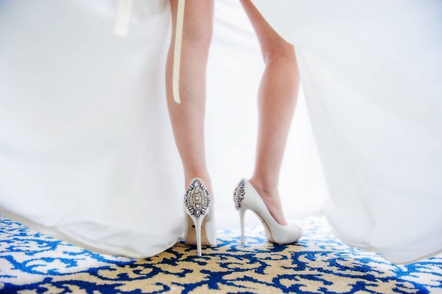 The bride purchased her gown at Nicole Bridal in Jenkintown, PA. Designer, Eugenia Couture, was kind enough to design a custom gown. Opposite from Meghan’s original intentions of wearing a lace gown, she and Eugenia created a one of a kind fitted silk dress with beautiful beadwork throughout the illusion top and deep open back. To keep with the classic theme, the groom and groomsmen wore black tuxedos, and the bridesmaids wore long, fitted black lace dresses.