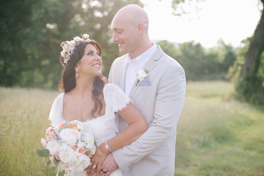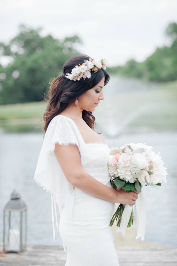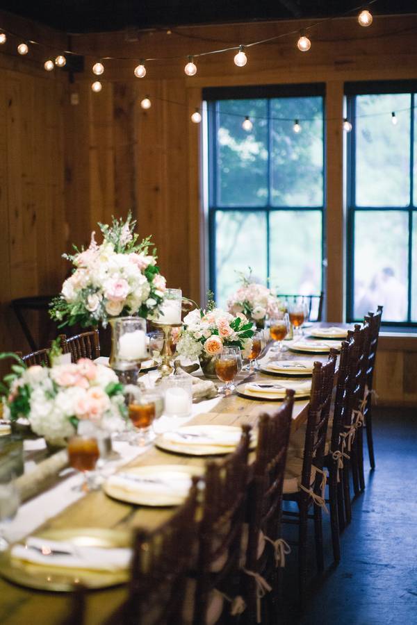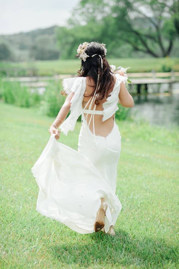 Mint Springs Farm is a remarkable venue. Its beauty is timeless, and I wanted that to be highlighted more than any decor. I’d always dreamed of a wedding with pale colors and one that had a very natural look. We chose to play off different textures – metal planters, driftwood, and soft fabrics. I wanted a bohemian outdoor wonderland.