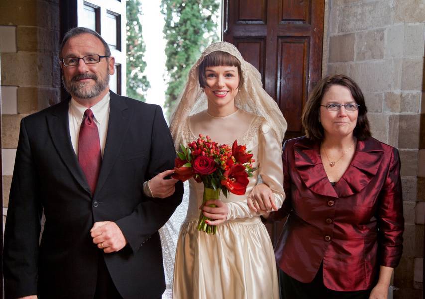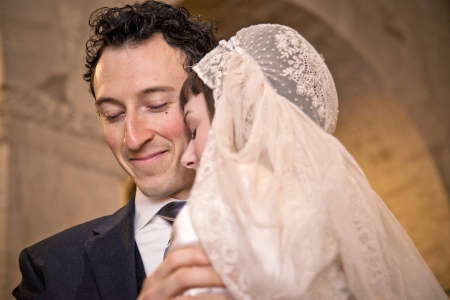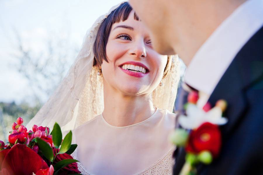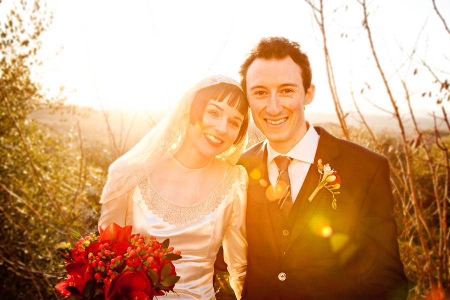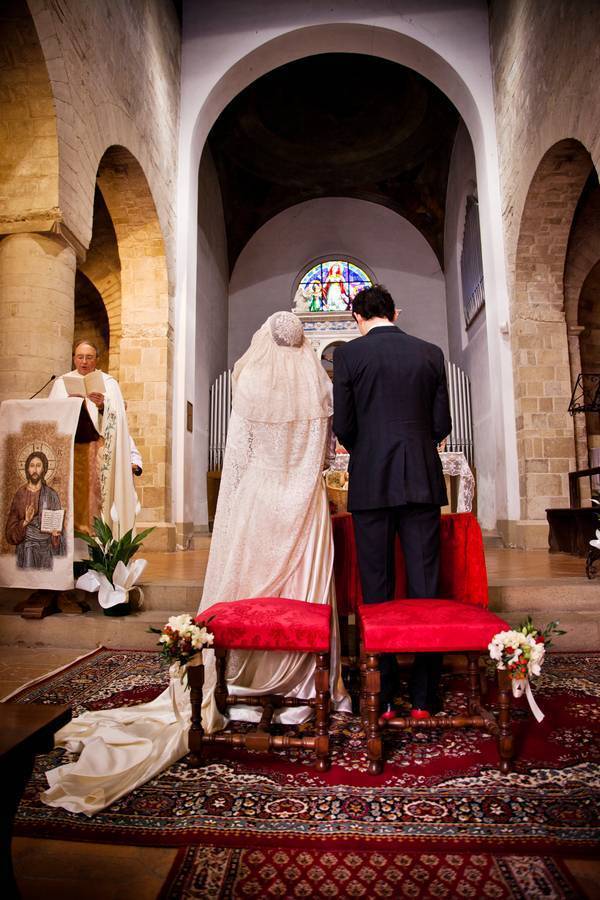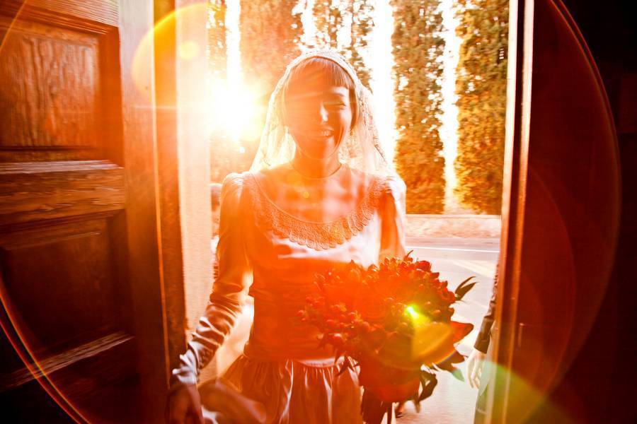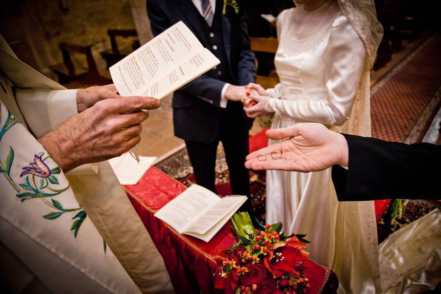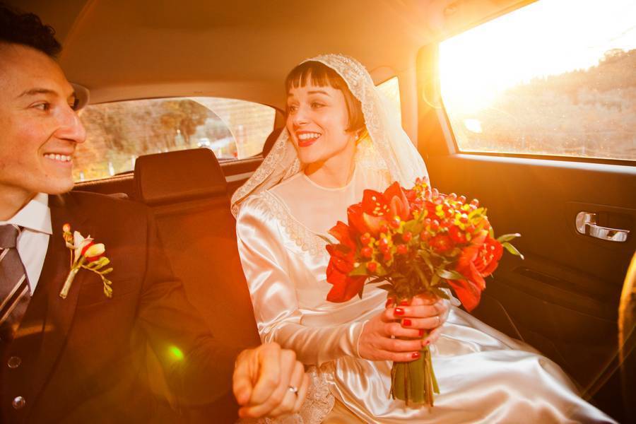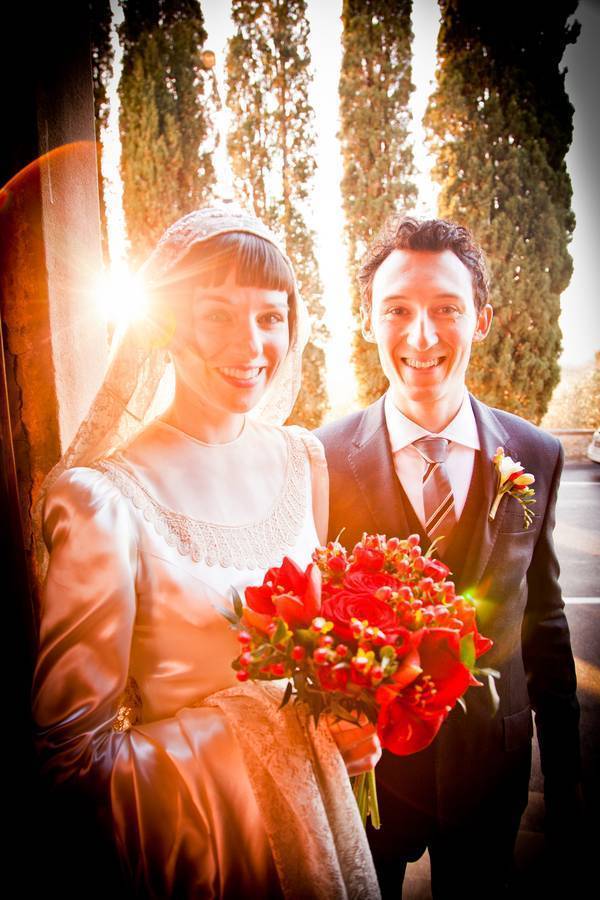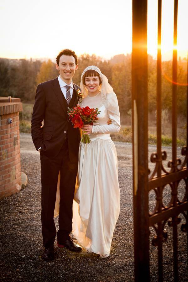 Vintage Wedding in Tuscany. 1920 dress of the grandmother of the bride and all the charm of a Christmas sunny and cold day in the Tuscan countryside. the Catholic Church where it was solemnized was built before they year 1000 (AD)