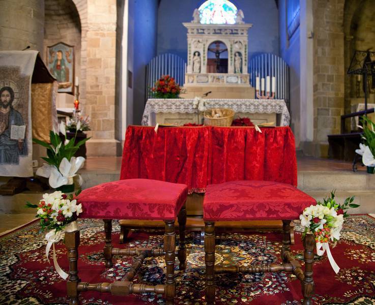 The ceremony was solemnized in a Romanic Church in the Tuscan country side. The church is dated back to before the year 1000 and the charm of Tuscany was all there. Even the decorations were red and green like the typical Christmas Decorations. This was a very small event so the couples wanted to keep it as similar as possible to a Christmas Dinner and leveraged the Christmas Tree decoration in the luxury villa they rented. Table decorations were minimal as the atmosphere was made by the Christmas tree behind, the spirituality of the Sacrament and Tuscany
