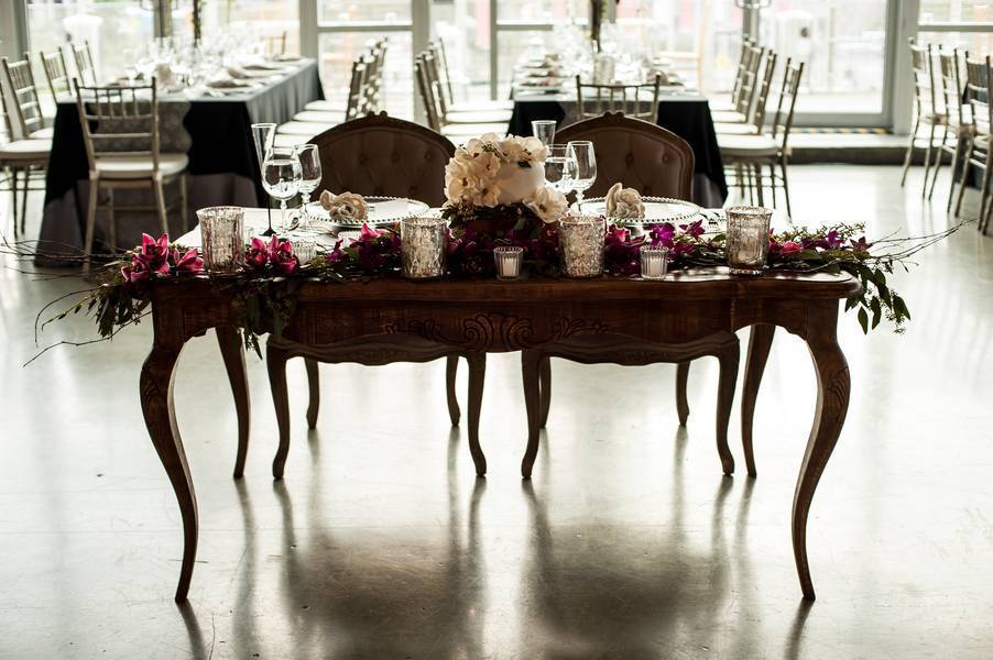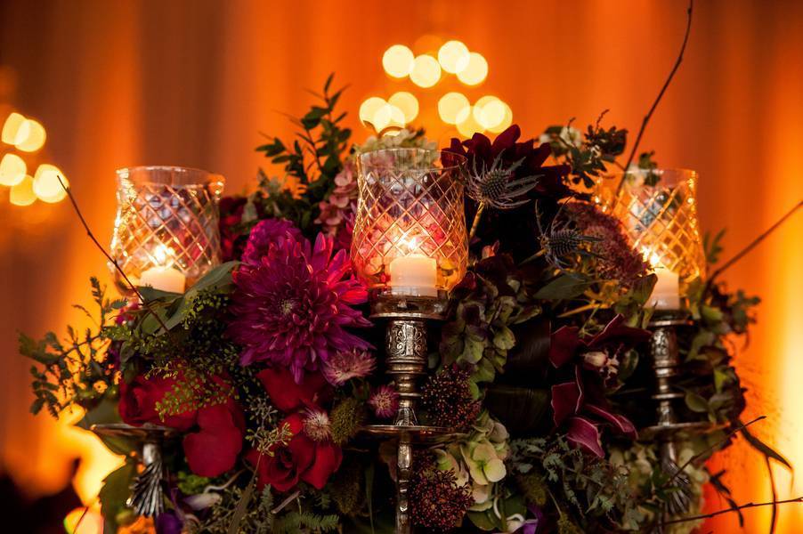 Robert and I both dreamed of getting married in the country as we both grew up spending our summers in there. However, getting 300 people to the country is no easy task. Instead, we thought it would be easier to transform a room at the Science Center in Montreal into an enchanted forest. The color scheme revolved around warmth and greenery focusing on deep burgundies and dark mauves as well as introducing tons of wood and muted silvers.