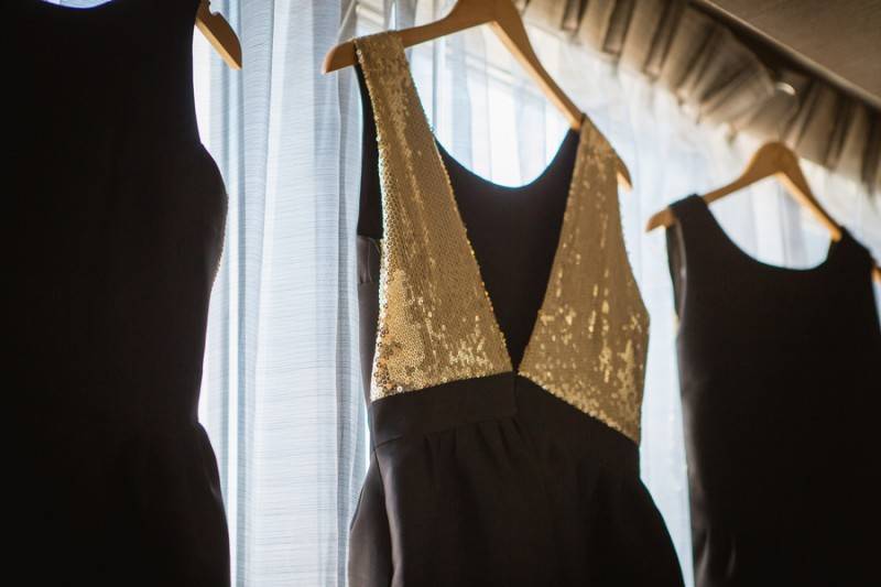 The Dress Fairness: While looking for bridesmaids dresses I wanted something classic and fun. Something that I know the girls would love and I something wouldn’t regret five years from now looking back at my wedding pictures. For months, I searched and searched for the perfect bridesmaids dresses and I happened upon an amazing designer, Camilyn Beth. The dresses were a solid black fit-and-flare and very simple from the front. Then the back of the dress was a deep v with gold sequin panels. Wedding business in the front, party in the back!