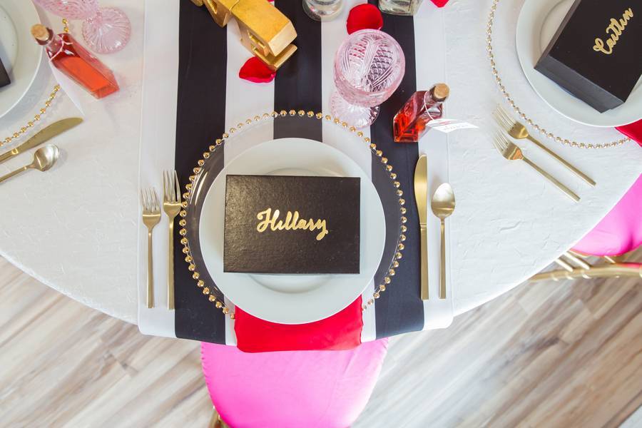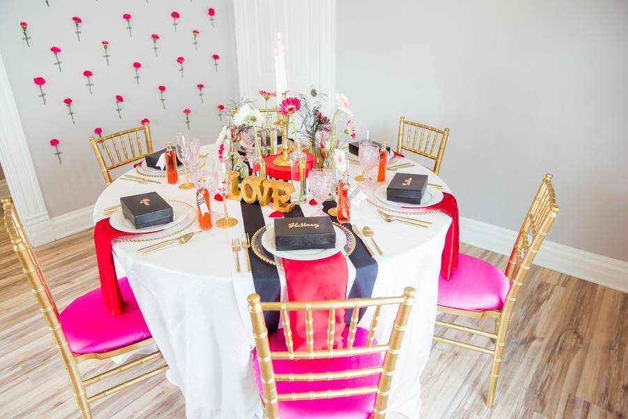 It’s like Valentine’s Day exploded in this plain gray room and made brunch 10 times even more romantic and fun than it already is. Isn’t this a lovely sight to see as you celebrate being a bride-to-be with your beloved BFF. Red, fuchsia, and gold dominated the room with a bit of black and white stripes to give the setup character. The Kate Spade inspired styling is so extra I am loving it! Plus crushing on the eye-popping tiffany chairs, to be honest.
