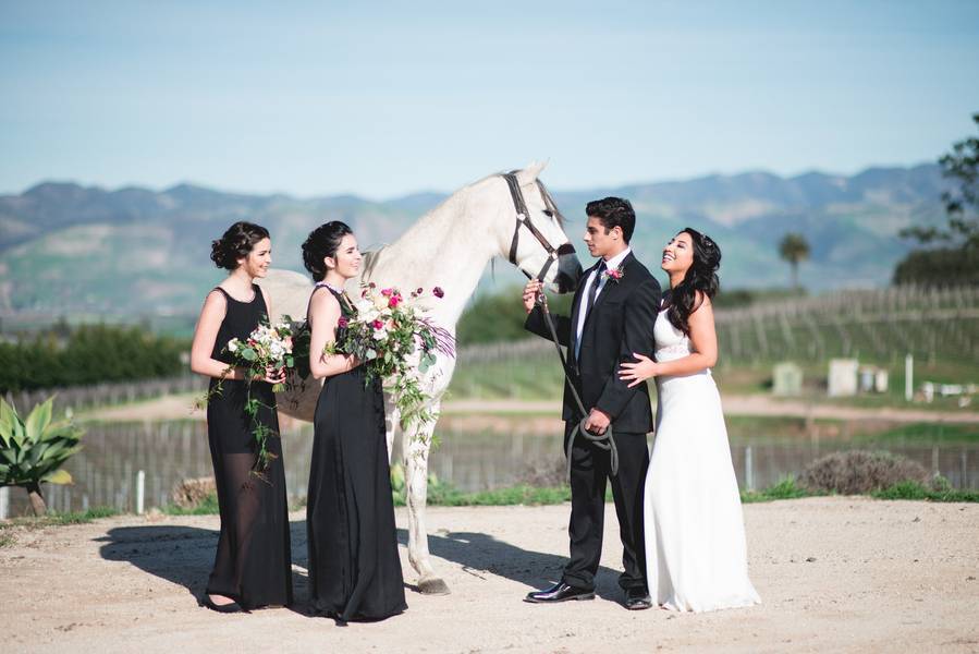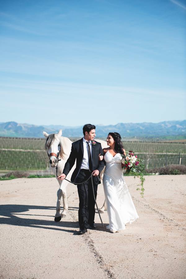 Fairy tale elegance. The bride and groom did a short couple’s session with a beautiful white horse, which added an extra elegance to their event and final photos.
