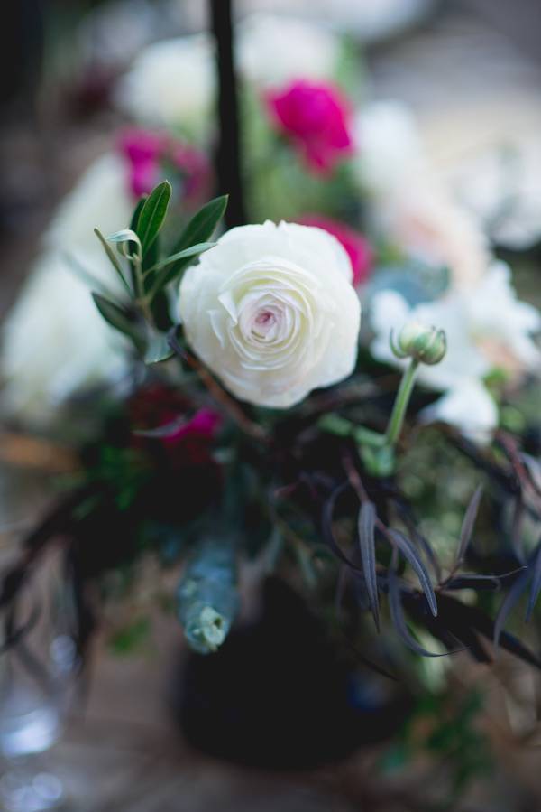 The flower arrangement. They were deconstructed in a way that modernized the feel and went well with the vineyard’s rambling vines and outdoor landscapes. Stepping away from a tight flower arrangement added a rustic touch to the decor. Adding touches of greenery to the chairs and tables kept the elegance but added whimsy.