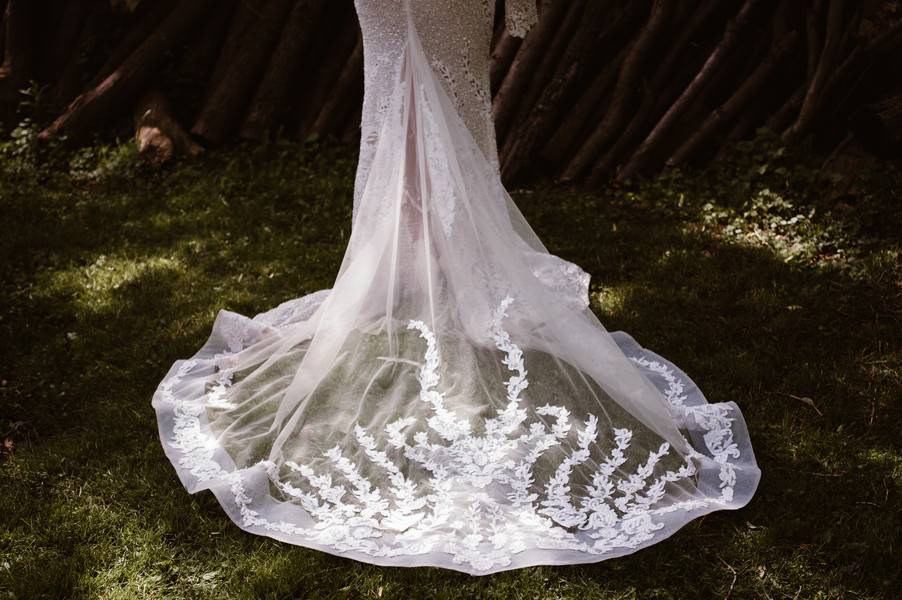 Cailey wore two exquisite dresses. The first, a beautiful and convertible Henkaa Sakura gown that can effortlessly be worn 21+ different ways. So pretty and perfect for an elopement as it can easily be rolled up into your suitcase, it’s comfortable and takes up little space. Her second dress by Berta was a stunning lace, deep v-neck gown with embellished bodice, long sleeves and flared, mermaid skirting. The magnificent, 23 foot veil was handmade by Cailey and her mother. Brendan was debonair in his black and white Tolo Tuxedo. The marquis cut engagement ring Cailey wore was breathtaking. This beauty came from Michael Hill Jewelers who also supplied Brendan’s wedding band. Cailey’s wedding ring and necklace were both sourced from Khan’s Custom Jewellery. Written by Michelle Leroux, White Rabbit Events.